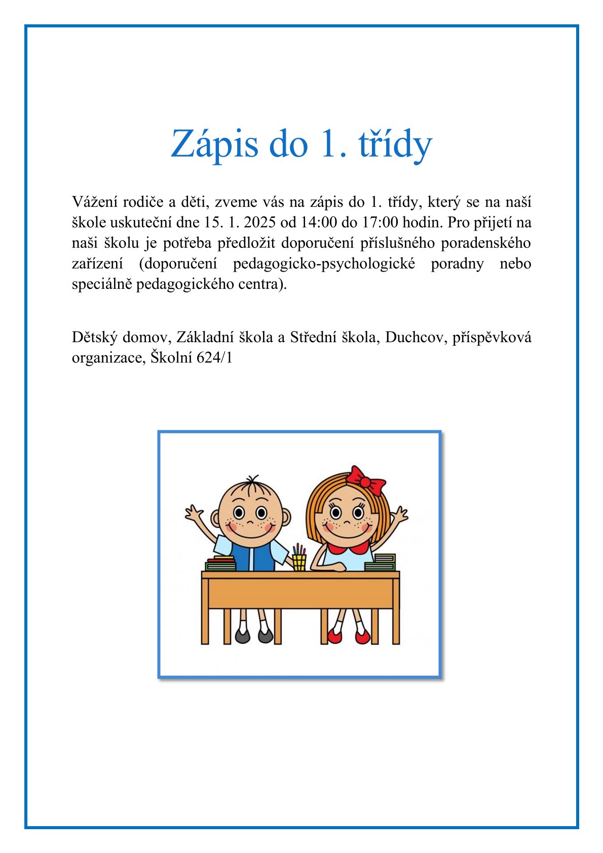 Zápis do 1. třídy pro školní rok 2026/2027
